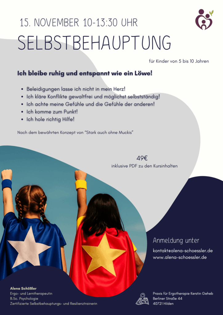 Der Selbstbehauptungskurs für Kinder von 5 bis 10 Jahren Die Kinder lernen in diesem abwechselungsreich und alltagsnah gestalteten Kurs wie sie resilient mit üblen Beleidigungen und Konflikten umgehen. Wie reagiere […]